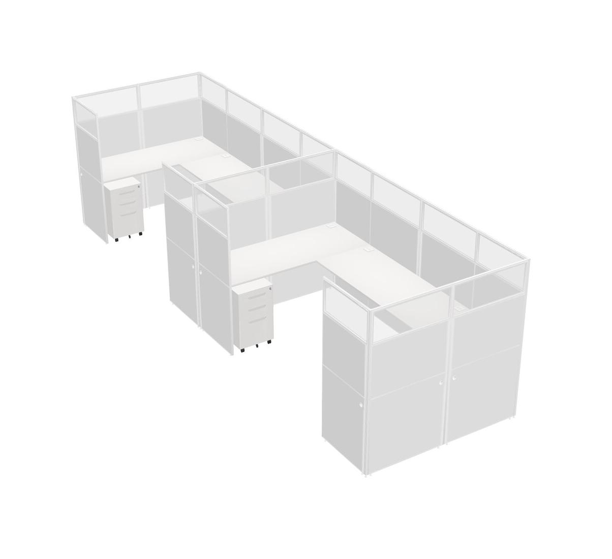 Système De Panneaux En U Blanc Pour 2 Personnes + Tiroirs Mobiles En Métal Pour 2 Utilisateur(s)