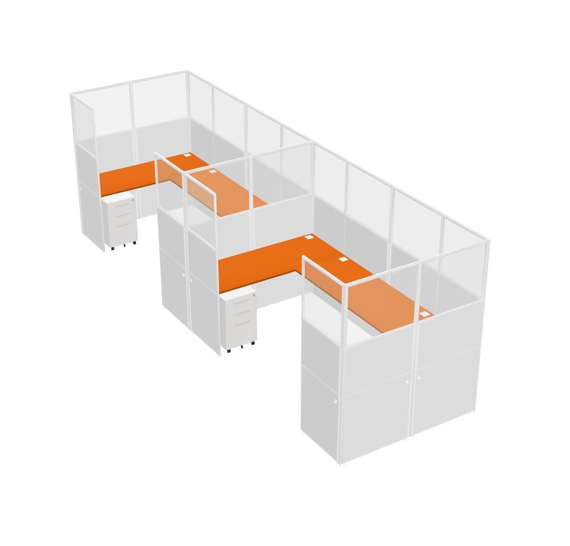 Système De Panneaux En U Orange Pour 2 Personnes + Tiroirs Mobiles En Métal Pour 2 Utilisateur(s)