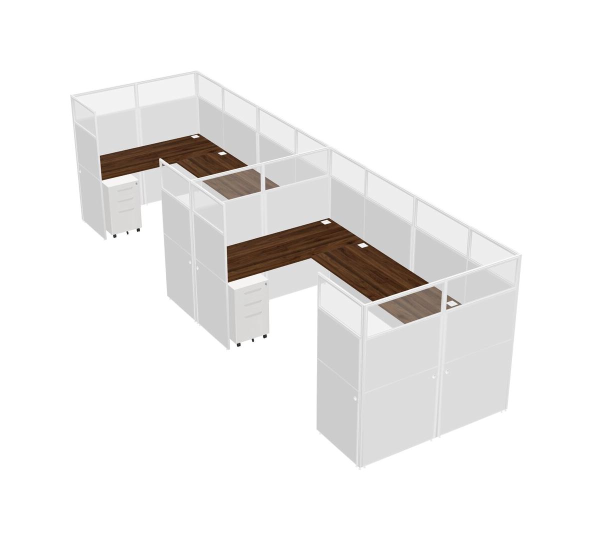 Système De Panneaux En U En Noyer Columbia Pour 2 Personnes + Tiroirs Mobiles En Métal Pour 2 Utilisateurs