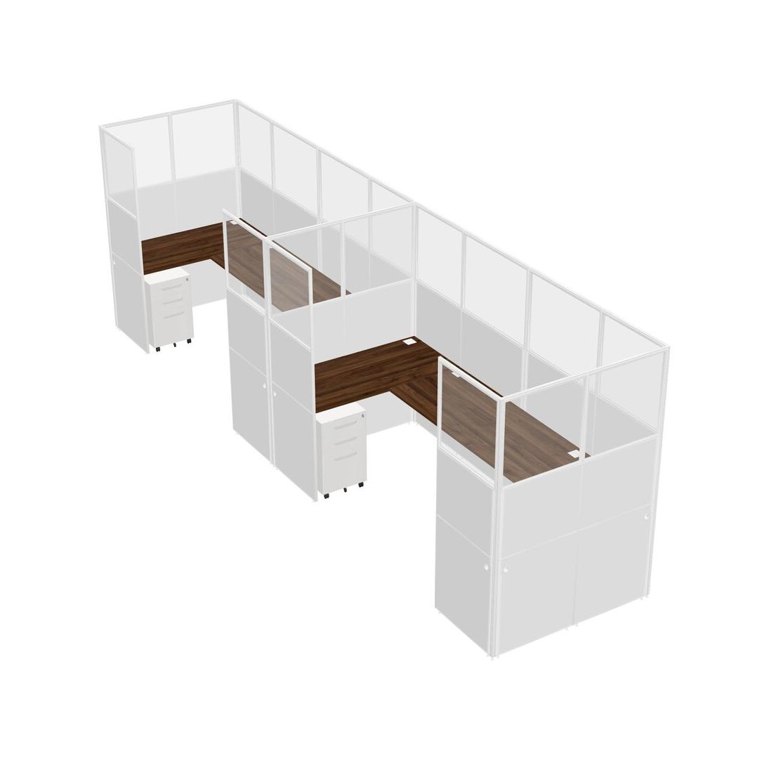 Système De Panneaux En U En Noyer Columbia Pour 2 Personnes + Tiroirs Mobiles En Métal Pour 2 Utilisateurs