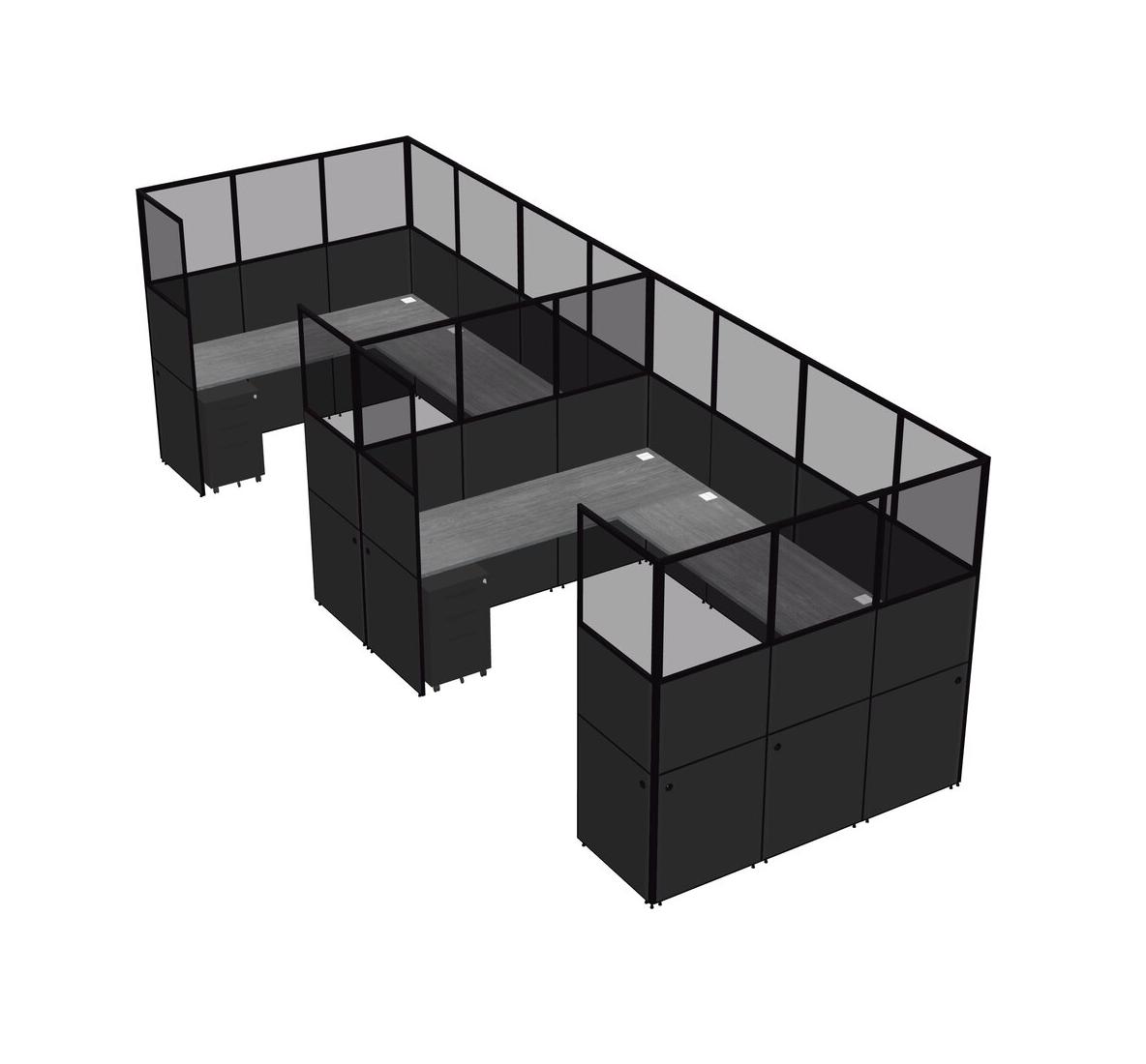 Système De Panneaux En U Gris Pour 2 Personnes + Tiroirs Mobiles En Métal Pour 2 Utilisateur(s)