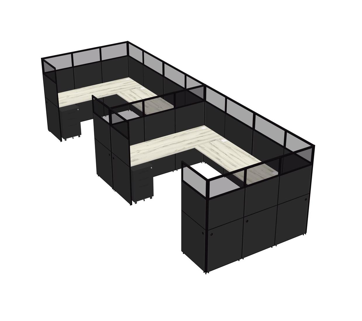 Système De Panneaux En U Heinne Holz Pour 2 Personnes + Tiroirs Mobiles En Métal Pour 2 Utilisateur(s)