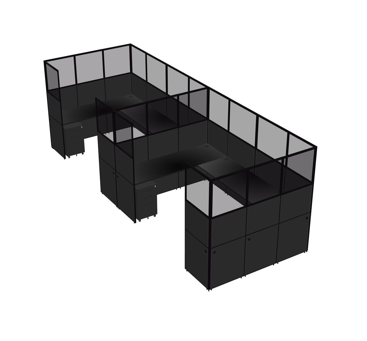 Système De Panneaux En U Noir Pour 2 Personnes + Tiroirs Mobiles En Métal Pour 2 Utilisateur(s)