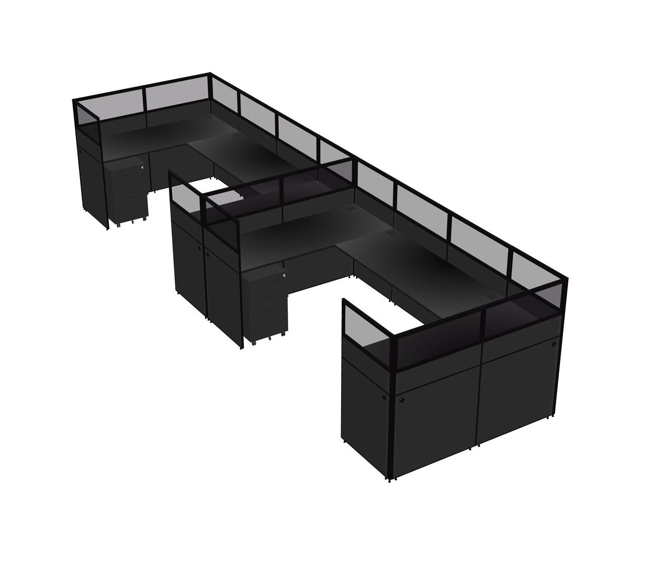 Système De Panneaux En U Noir Pour 2 Personnes + Tiroirs Mobiles En Métal Pour 2 Utilisateur(s)