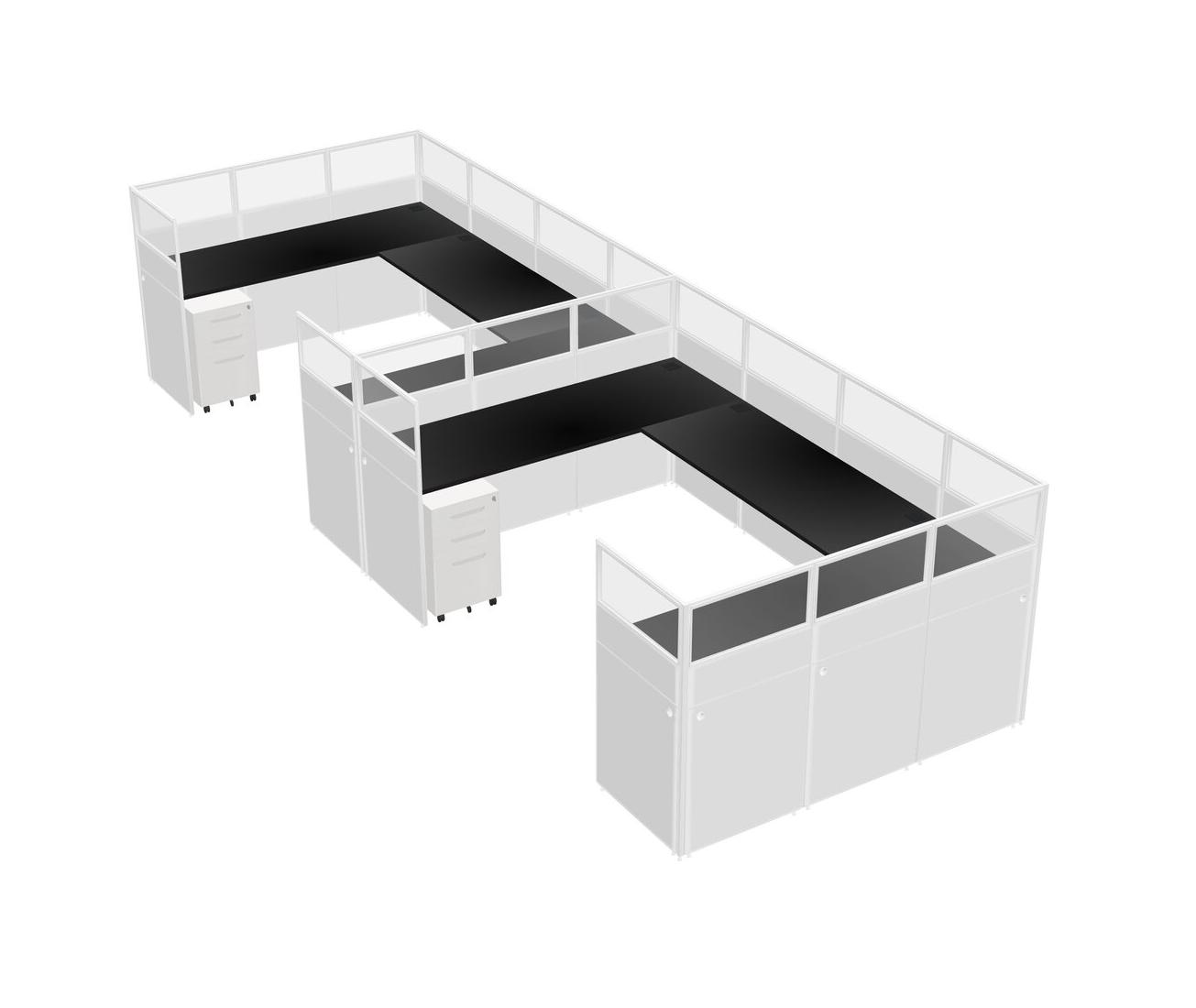 Système De Panneaux En U Noir Pour 2 Personnes + Tiroirs Mobiles En Métal Pour 2 Utilisateur(s)