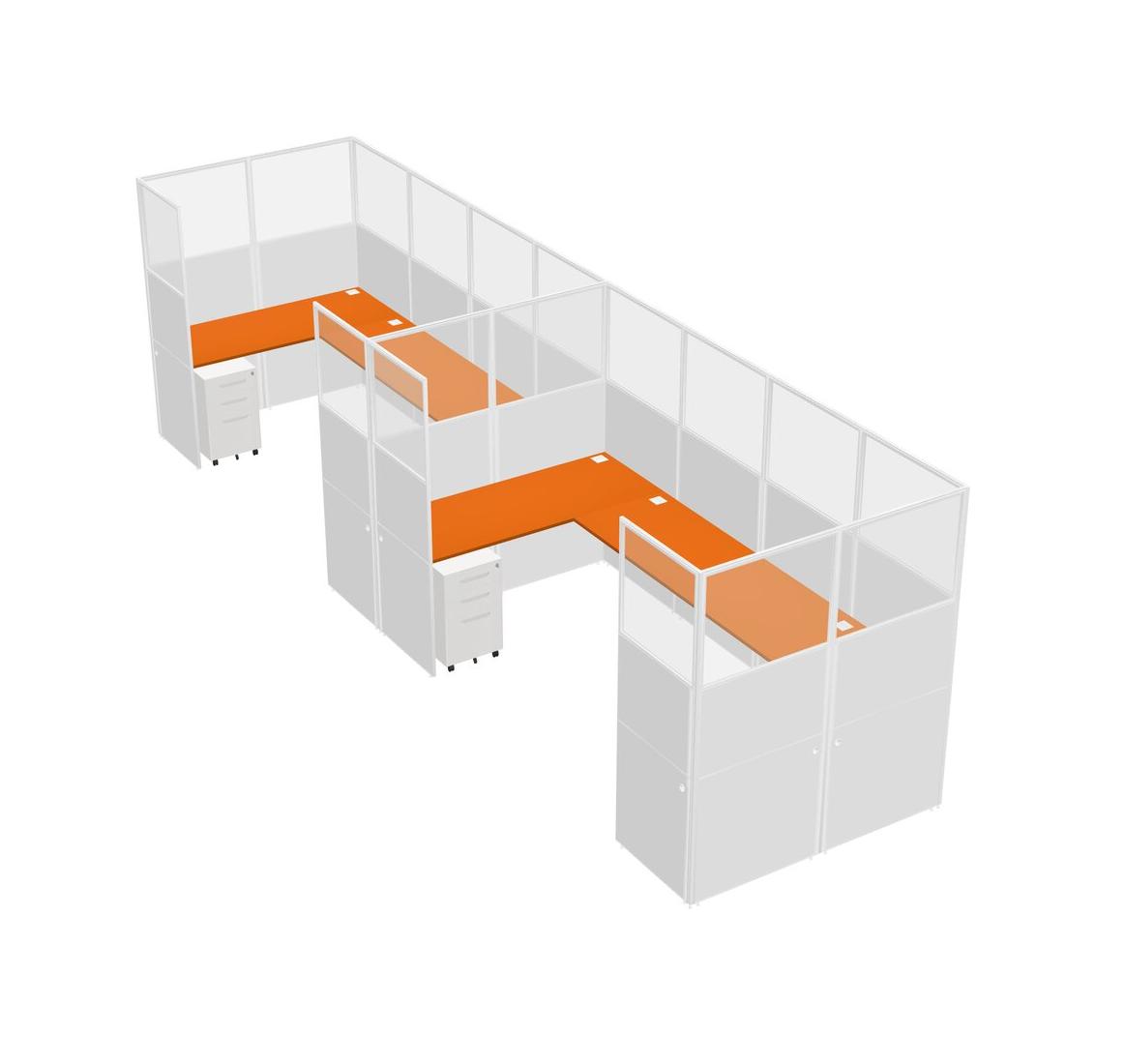 Système De Panneaux En U Orange Pour 2 Personnes + Tiroirs Mobiles En Métal Pour 2 Utilisateur(s)