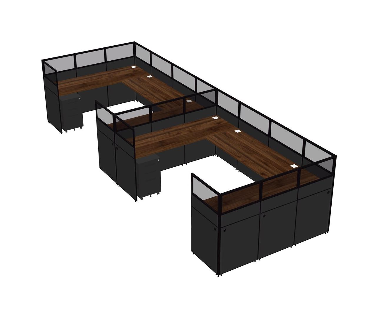 Système De Panneaux En U En Noyer Columbia Pour 2 Personnes + Tiroirs Mobiles En Métal Pour 2 Utilisateurs