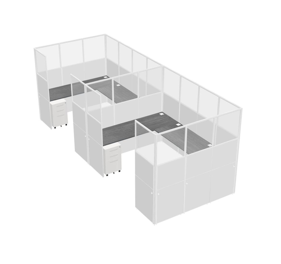 Système De Panneaux En U Gris Pour 2 Personnes + Tiroirs Mobiles En Métal Pour 2 Utilisateur(s)