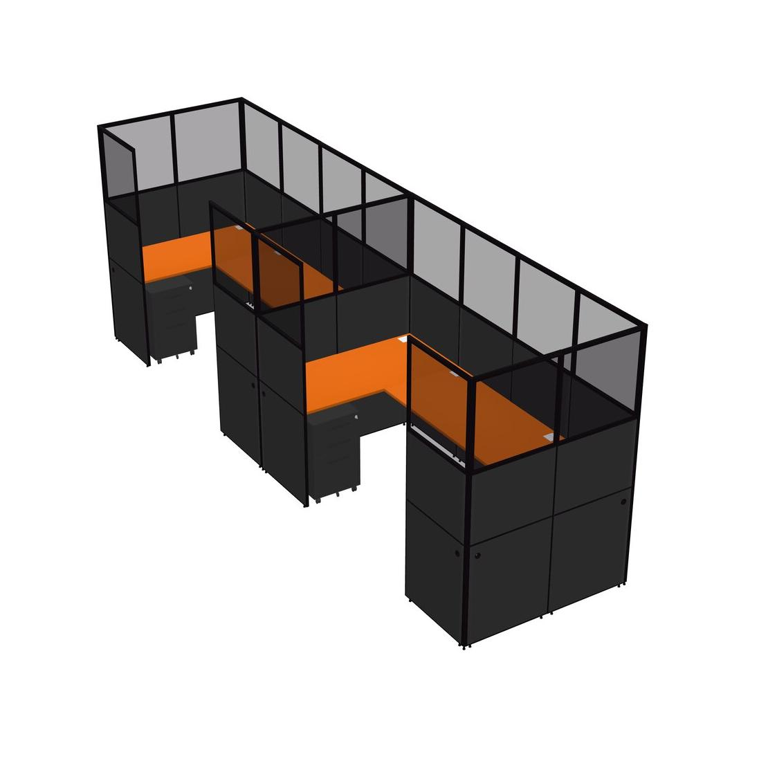 Système De Panneaux En U Orange Pour 2 Personnes + Tiroirs Mobiles En Métal Pour 2 Utilisateur(s)