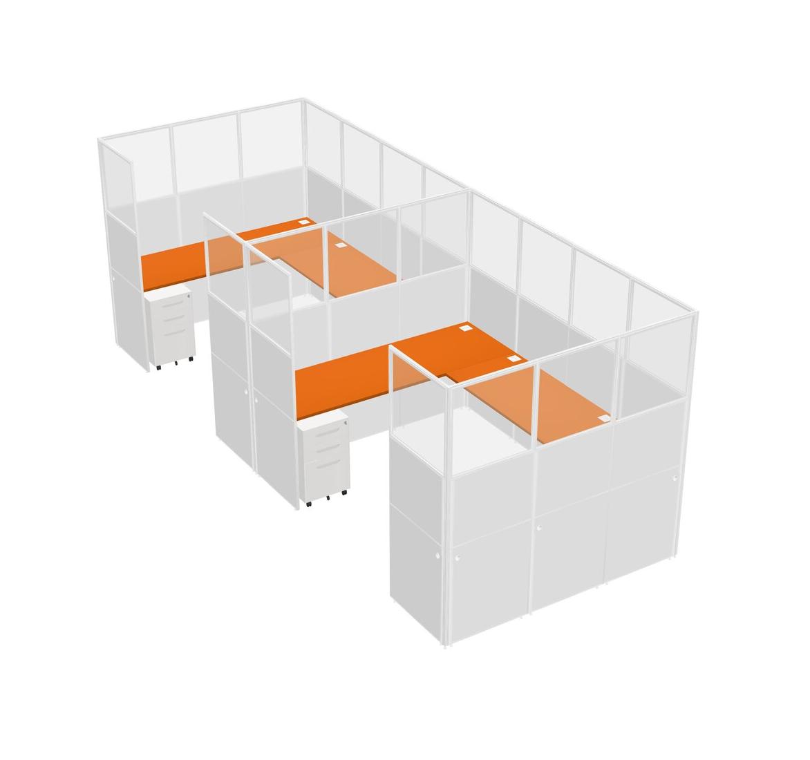 Système De Panneaux En U Orange Pour 2 Personnes + Tiroirs Mobiles En Métal Pour 2 Utilisateur(s)