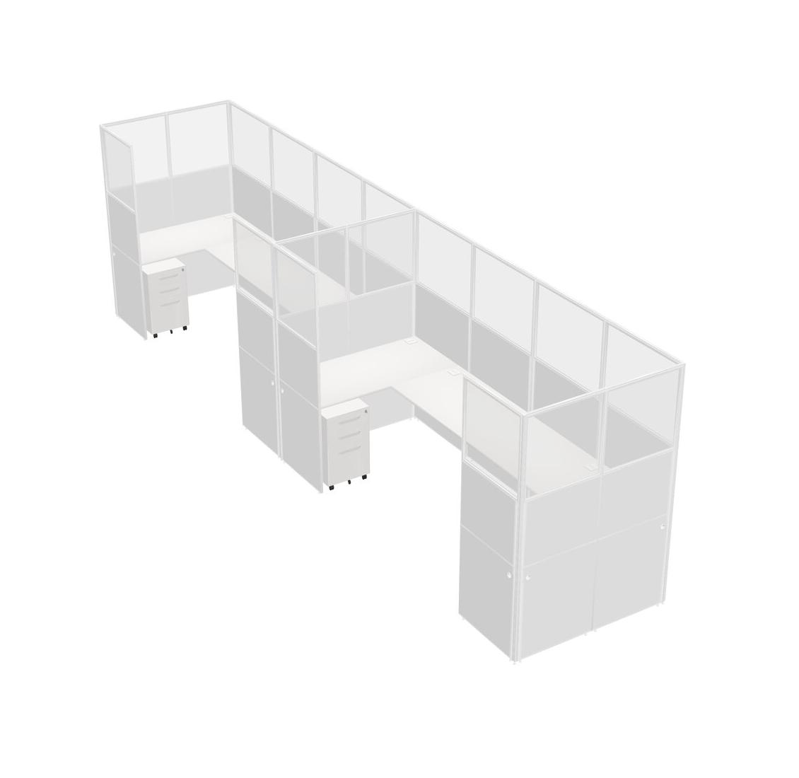 Système De Panneaux En U Blanc Pour 2 Personnes + Tiroirs Mobiles En Métal Pour 2 Utilisateur(s)