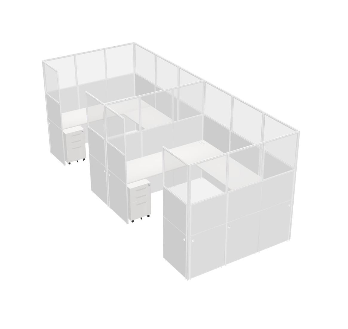 Système De Panneaux En U Blanc Pour 2 Personnes + Tiroirs Mobiles En Métal Pour 2 Utilisateur(s)