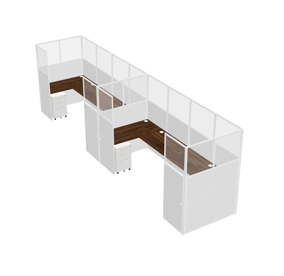 Système De Panneaux En U En Noyer Columbia Pour 2 Personnes + Tiroirs Mobiles En Métal Pour 2 Utilisateurs