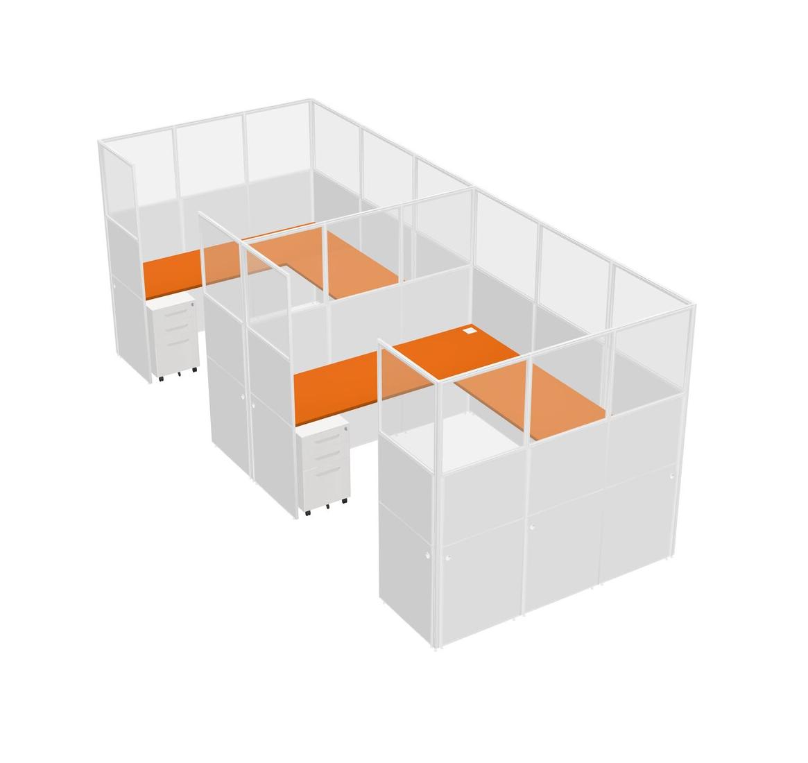 Système De Panneaux En U Orange Pour 2 Personnes + Tiroirs Mobiles En Métal Pour 2 Utilisateur(s)