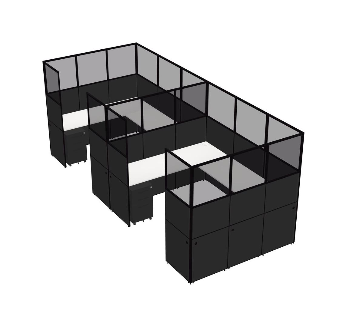 Système De Panneaux En U Blanc Pour 2 Personnes + Tiroirs Mobiles En Métal Pour 2 Utilisateur(s)