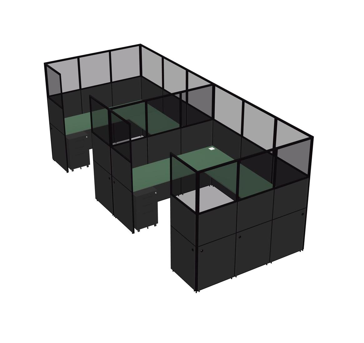 Système De Panneaux En U Vert Pour 2 Personnes + Tiroirs Mobiles En Métal Pour 2 Utilisateur(s)