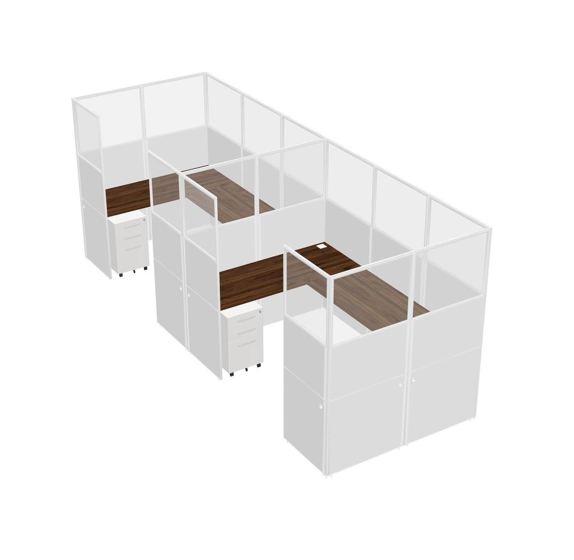 Système De Panneaux En U En Noyer Columbia Pour 2 Personnes + Tiroirs Mobiles En Métal Pour 2 Utilisateurs