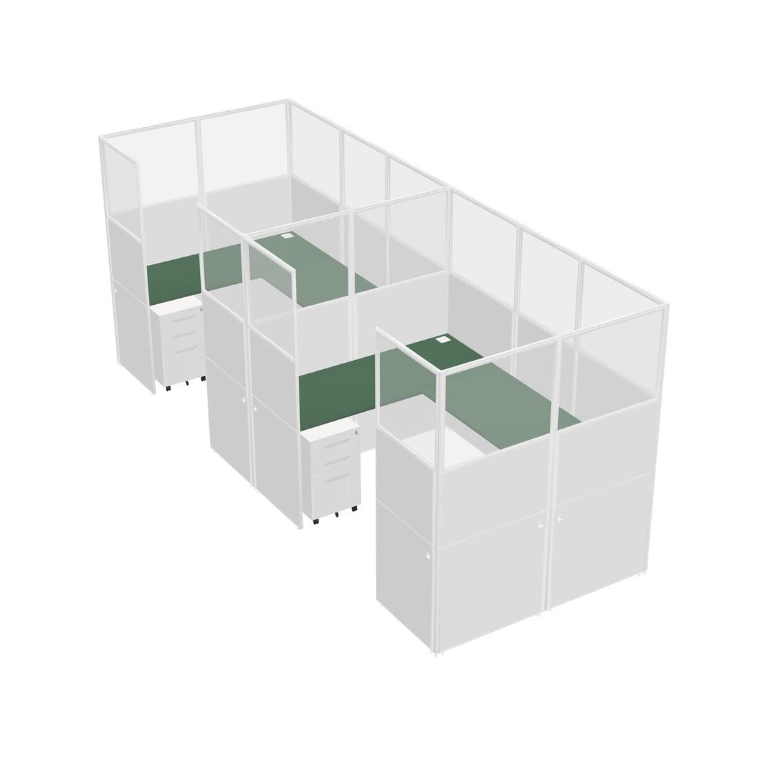 Système De Panneaux En U Vert Pour 2 Personnes + Tiroirs Mobiles En Métal Pour 2 Utilisateur(s)