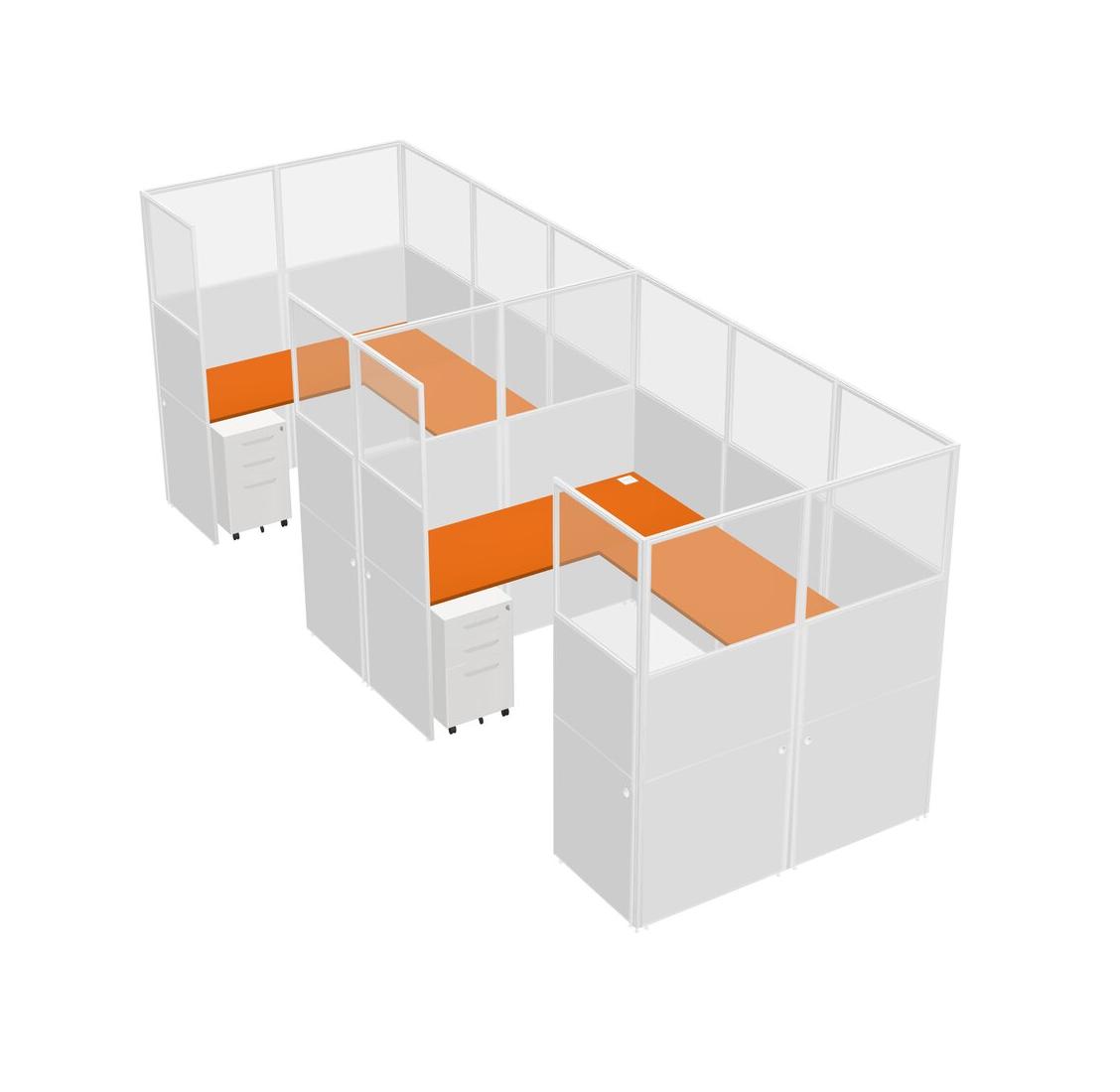 Système De Panneaux En U Orange Pour 2 Personnes + Tiroirs Mobiles En Métal Pour 2 Utilisateur(s)