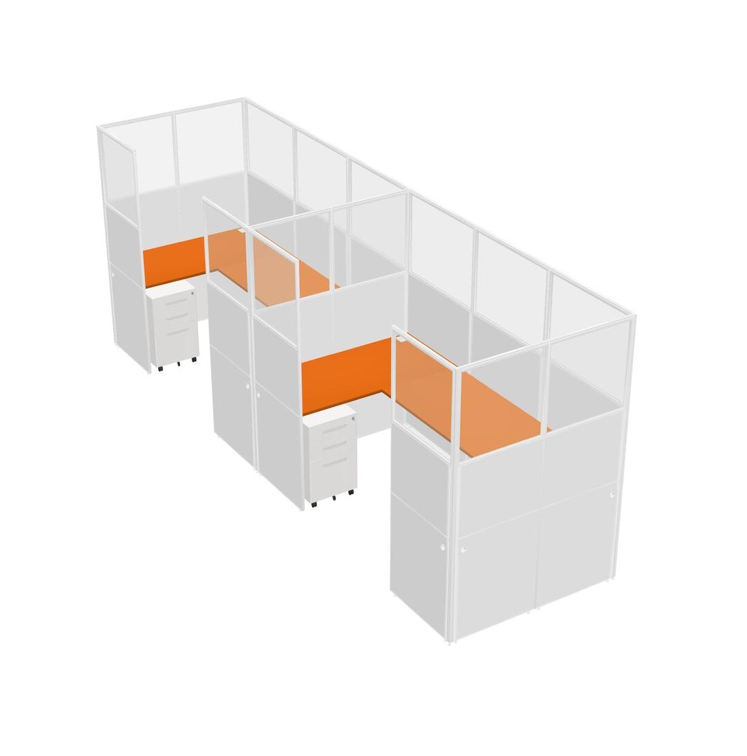 Système De Panneaux En U Orange Pour 2 Personnes + Tiroirs Mobiles En Métal Pour 2 Utilisateur(s)