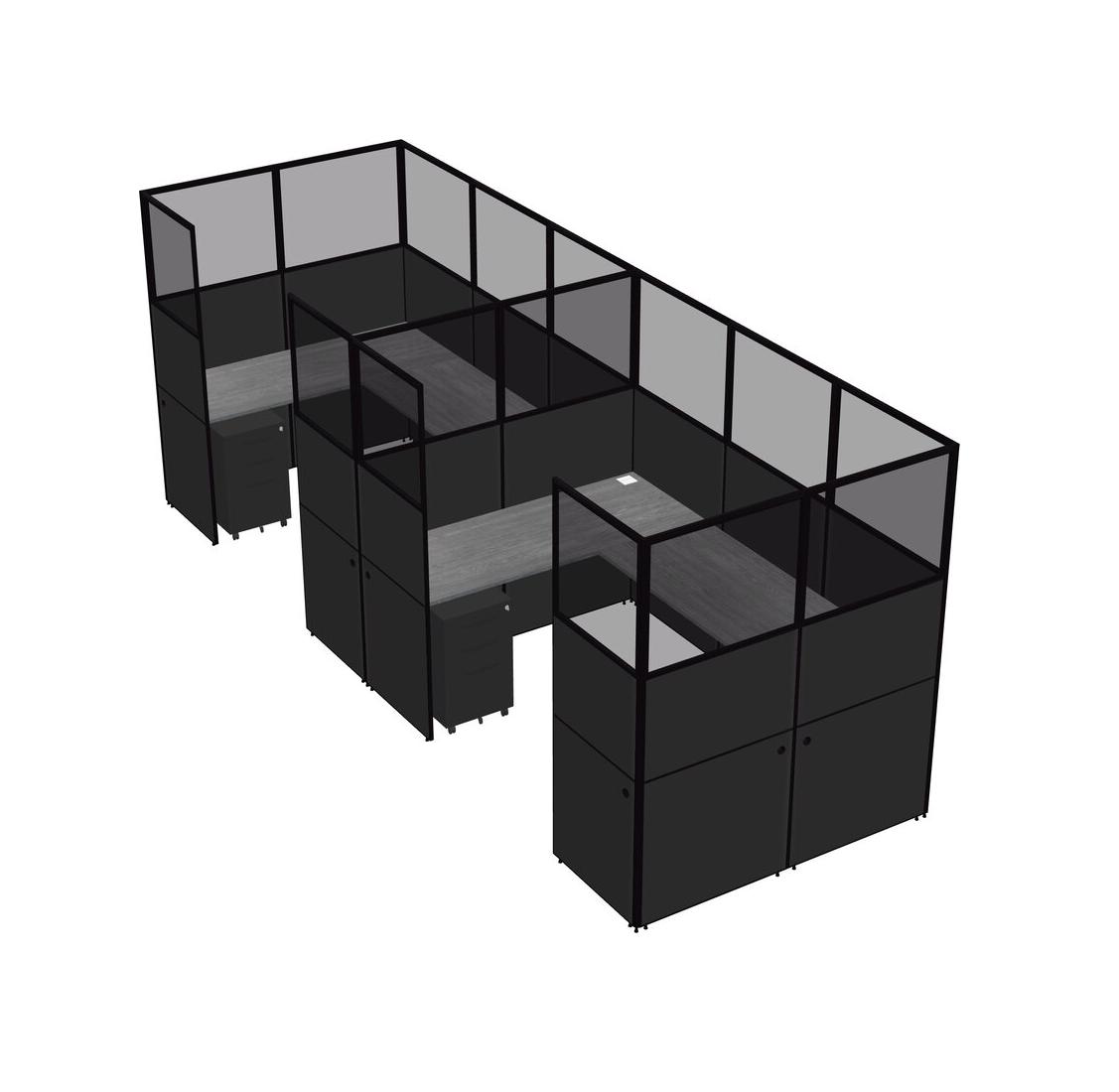 Système De Panneaux En U Gris Pour 2 Personnes + Tiroirs Mobiles En Métal Pour 2 Utilisateur(s)