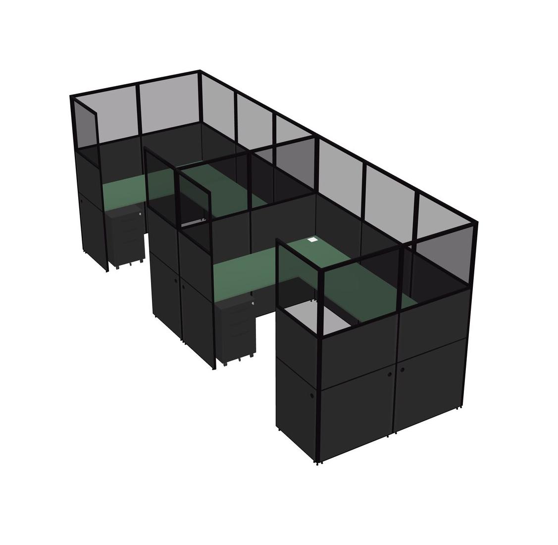 Système De Panneaux En U Vert Pour 2 Personnes + Tiroirs Mobiles En Métal Pour 2 Utilisateur(s)