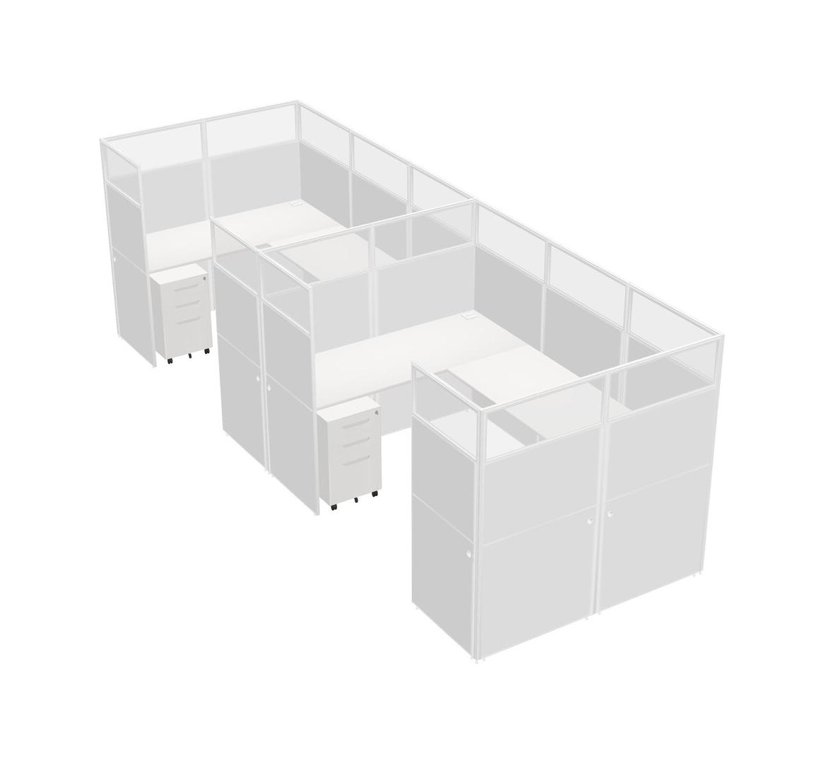 Système De Panneaux En U Blanc Pour 2 Personnes + Tiroirs Mobiles En Métal Pour 2 Utilisateur(s)