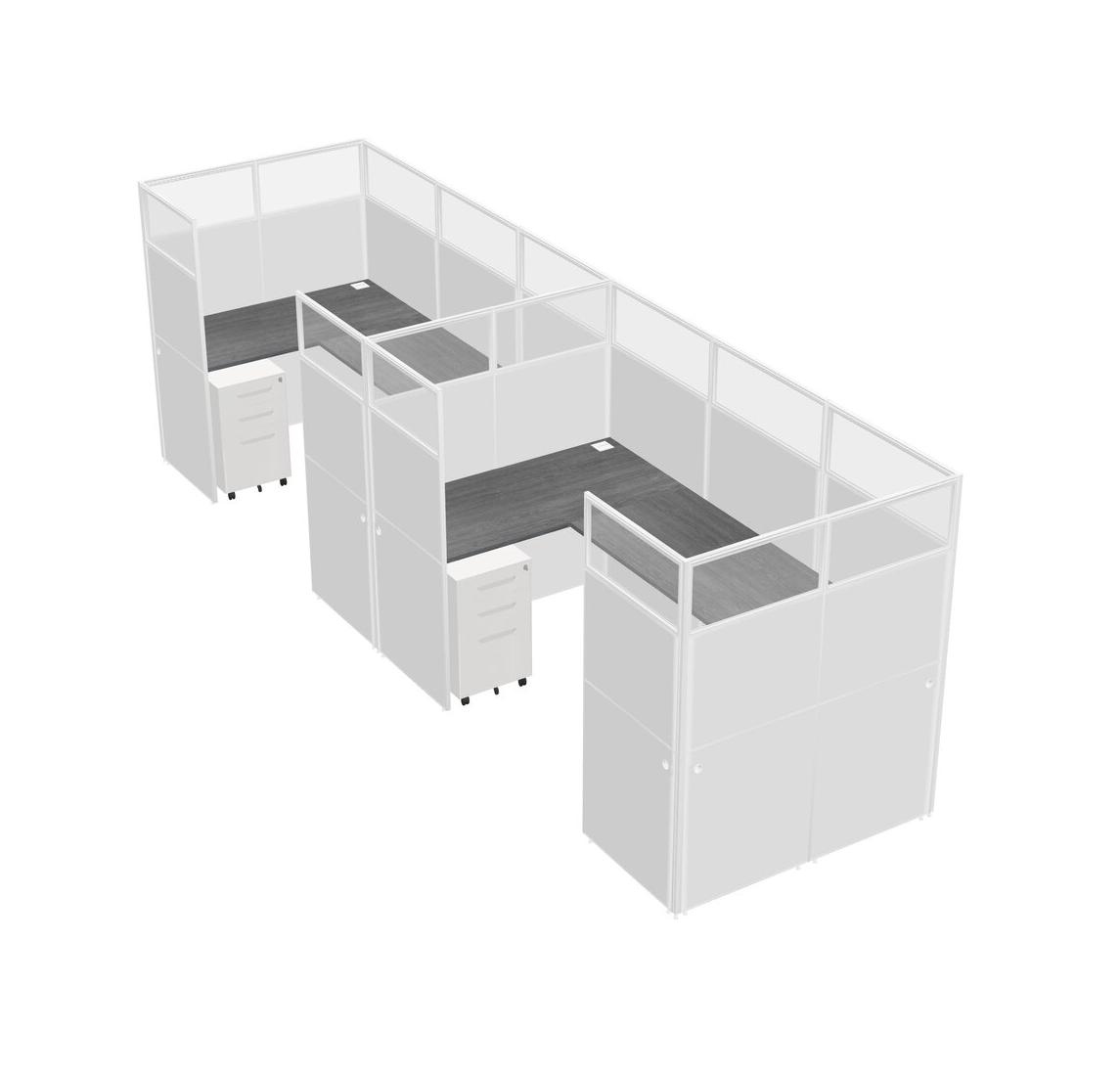 Système De Panneaux En U Gris Pour 2 Personnes + Tiroirs Mobiles En Métal Pour 2 Utilisateur(s)