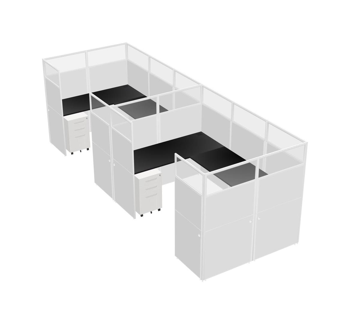Système De Panneaux En U Noir Pour 2 Personnes + Tiroirs Mobiles En Métal Pour 2 Utilisateur(s)