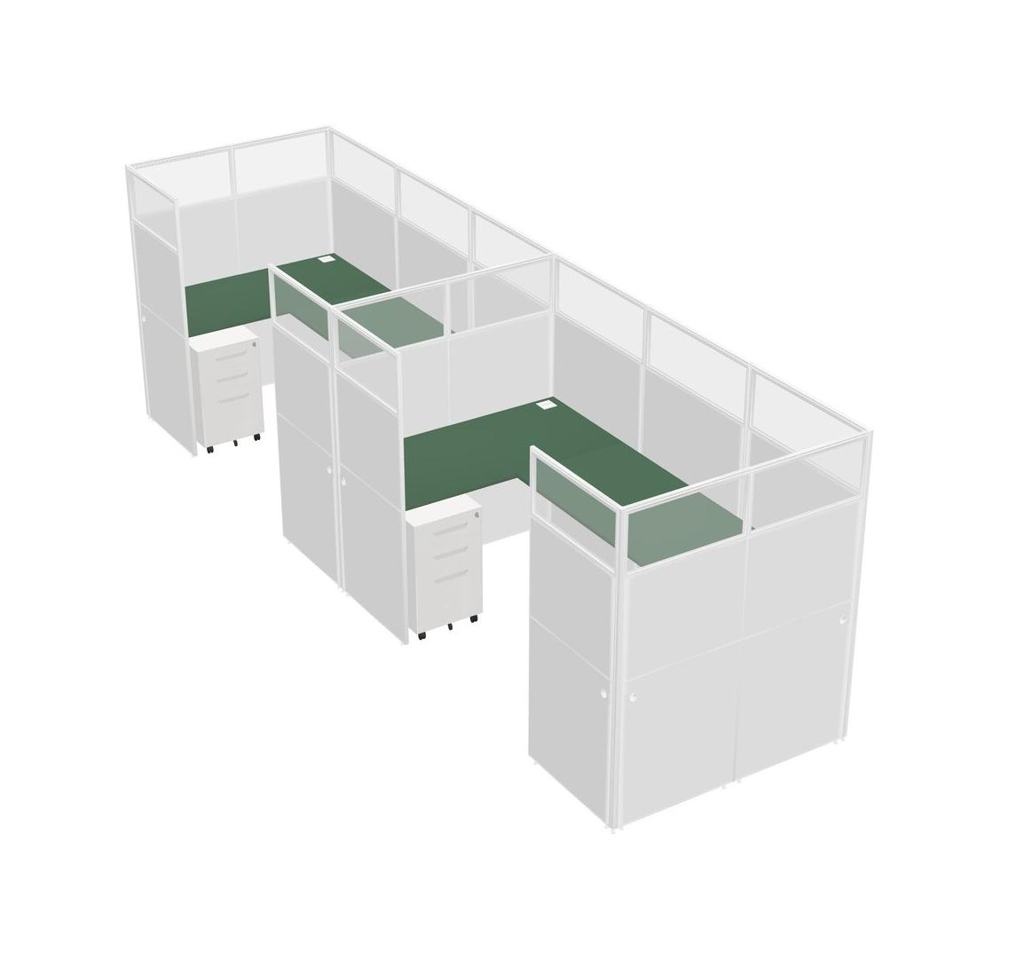 Système De Panneaux En U Vert Pour 2 Personnes + Tiroirs Mobiles En Métal Pour 2 Utilisateur(s)