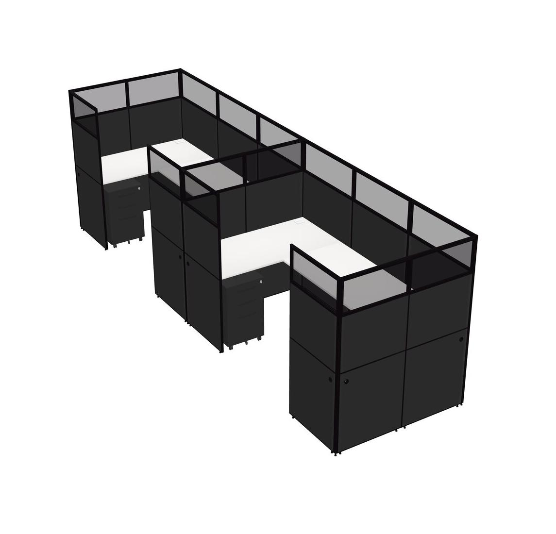 Système De Panneaux En U Blanc Pour 2 Personnes + Tiroirs Mobiles En Métal Pour 2 Utilisateur(s)