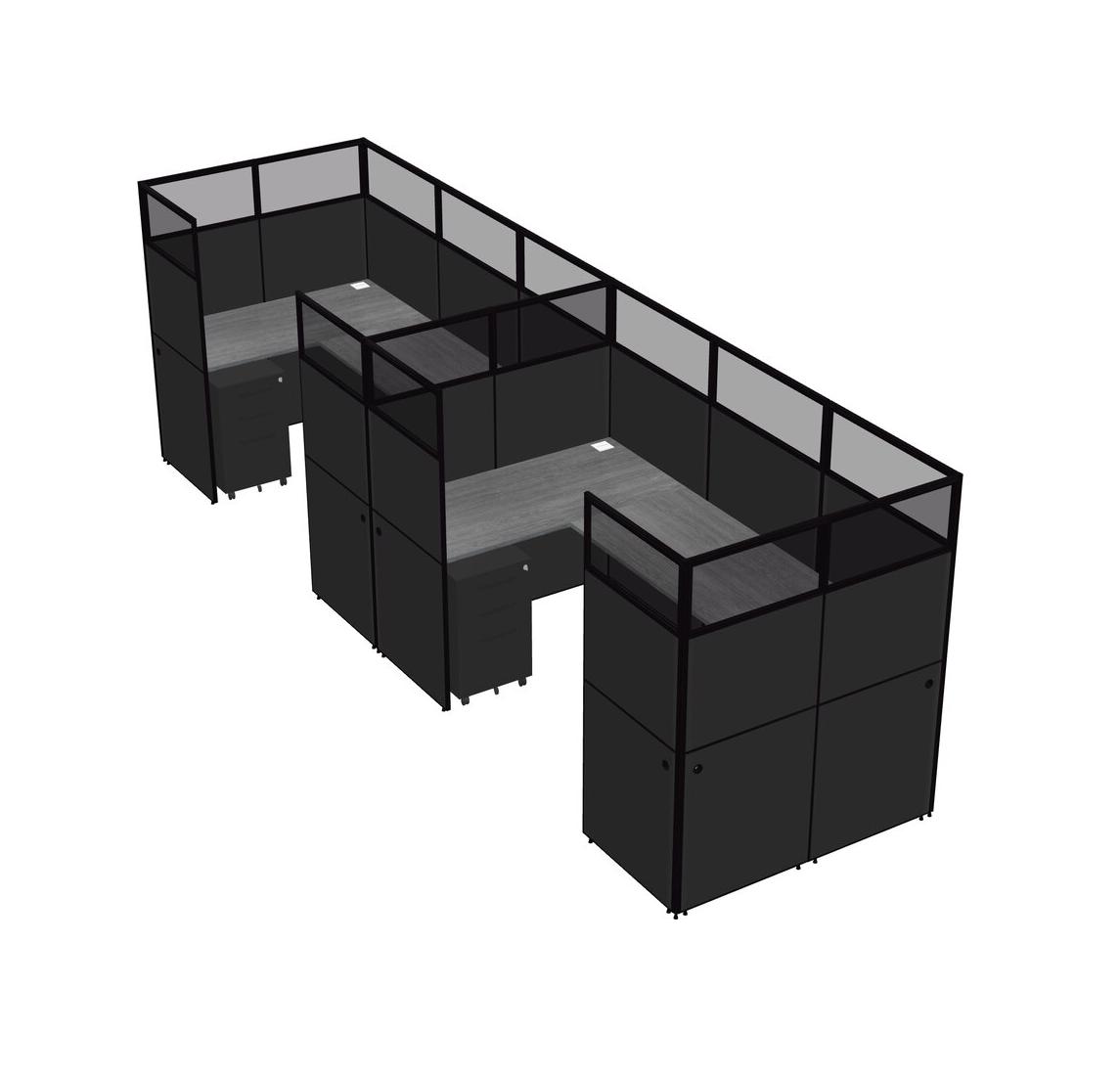 Système De Panneaux En U Gris Pour 2 Personnes + Tiroirs Mobiles En Métal Pour 2 Utilisateur(s)
