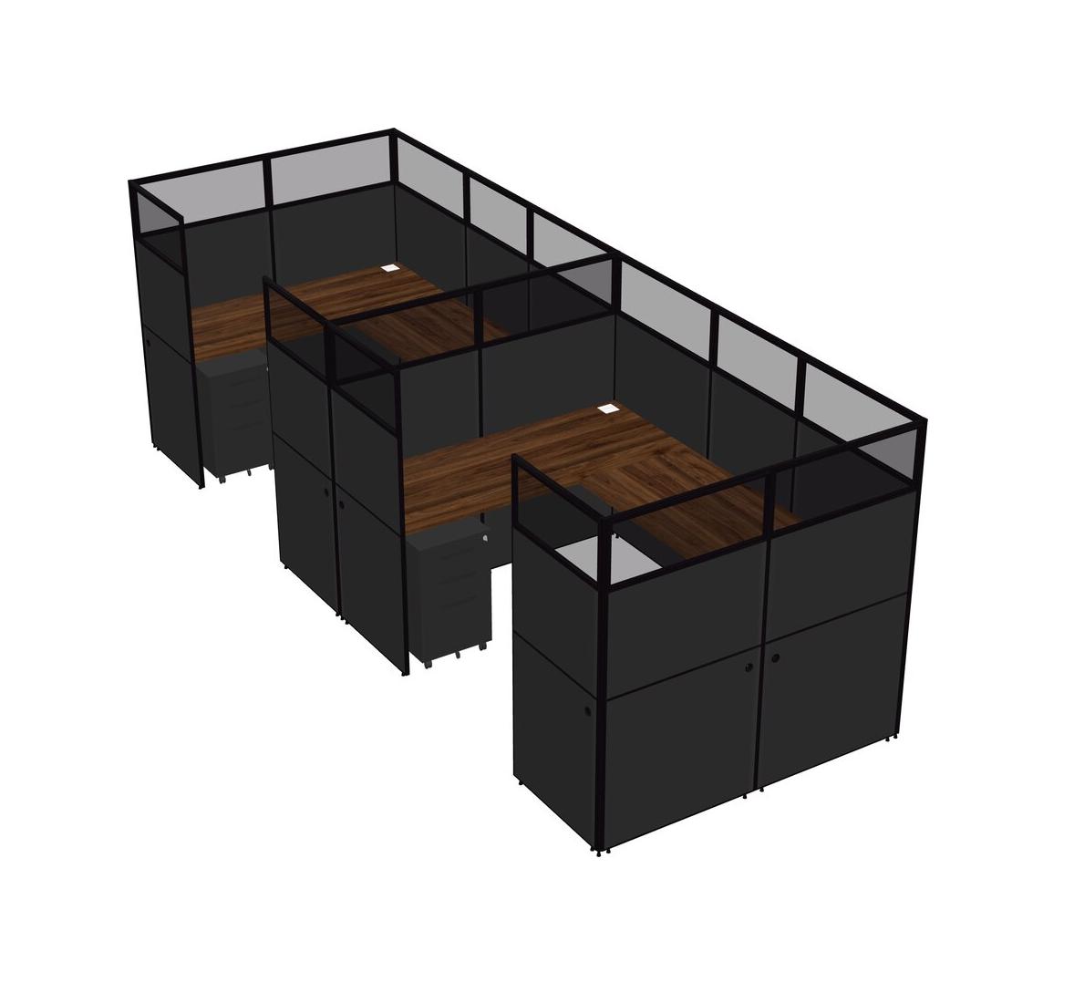 Système De Panneaux En U En Noyer Columbia Pour 2 Personnes + Tiroirs Mobiles En Métal Pour 2 Utilisateurs