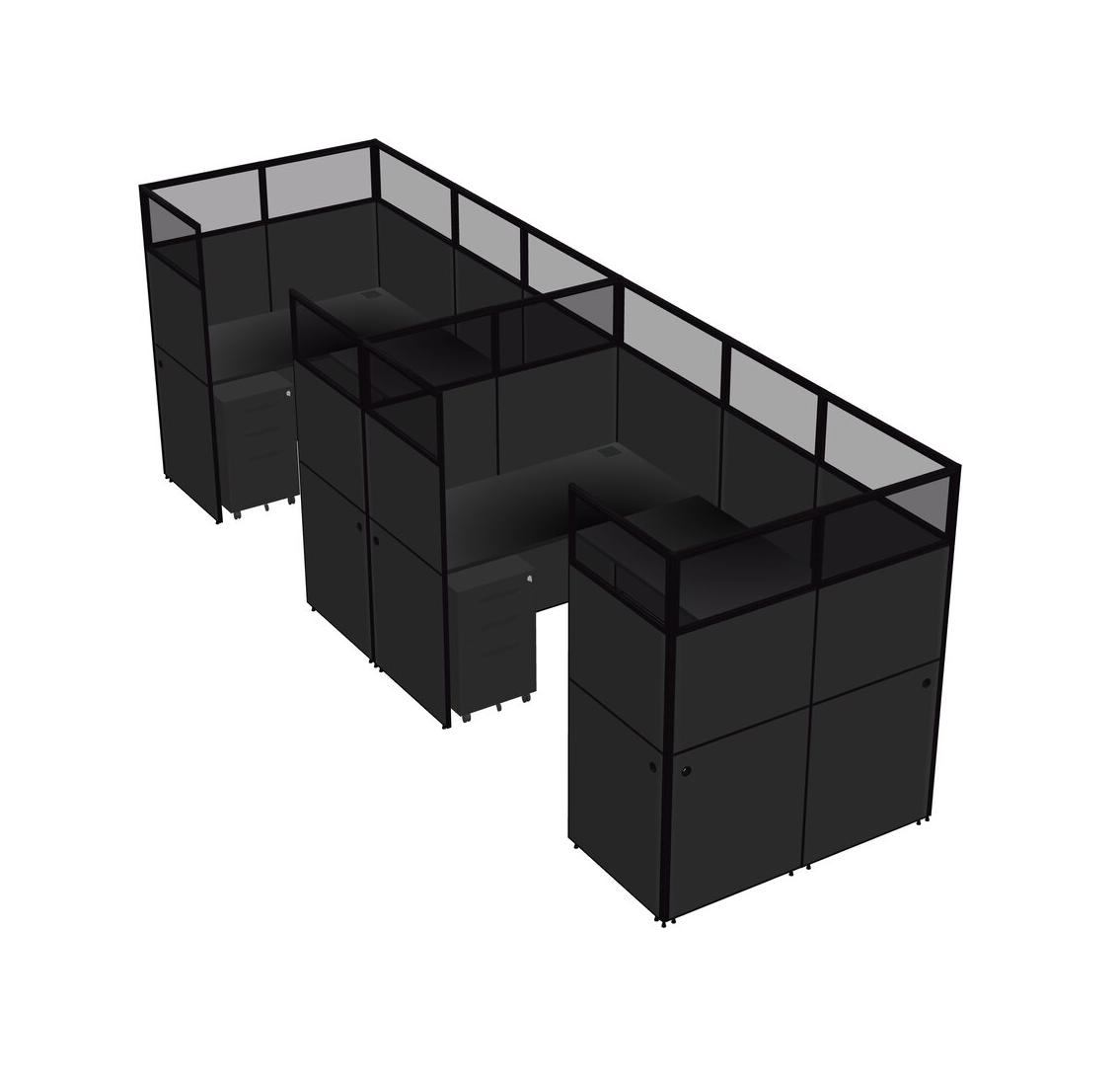 Système De Panneaux En U Noir Pour 2 Personnes + Tiroirs Mobiles En Métal Pour 2 Utilisateur(s)