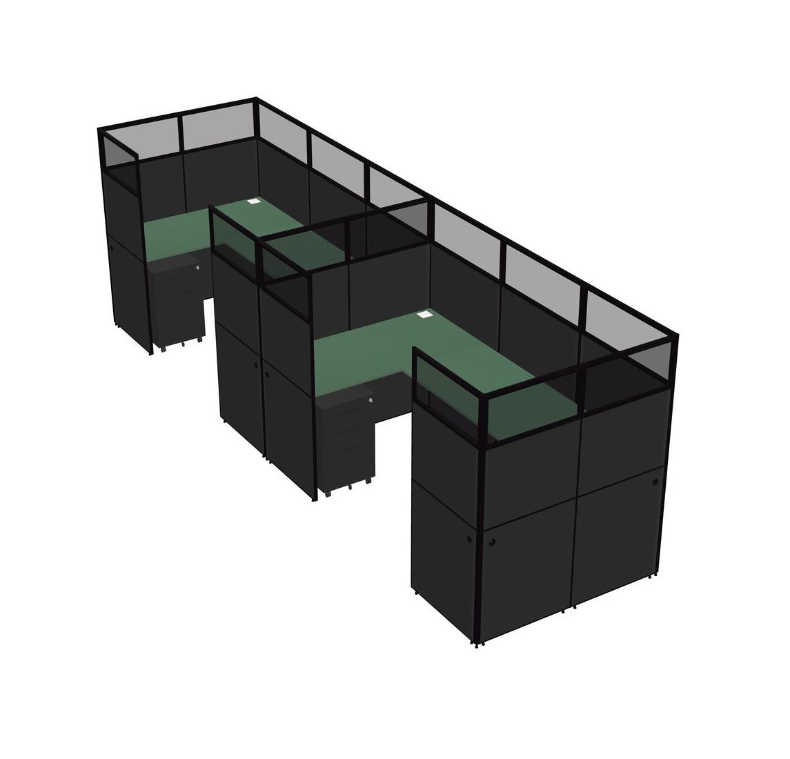 Système De Panneaux En U Vert Pour 2 Personnes + Tiroirs Mobiles En Métal Pour 2 Utilisateur(s)