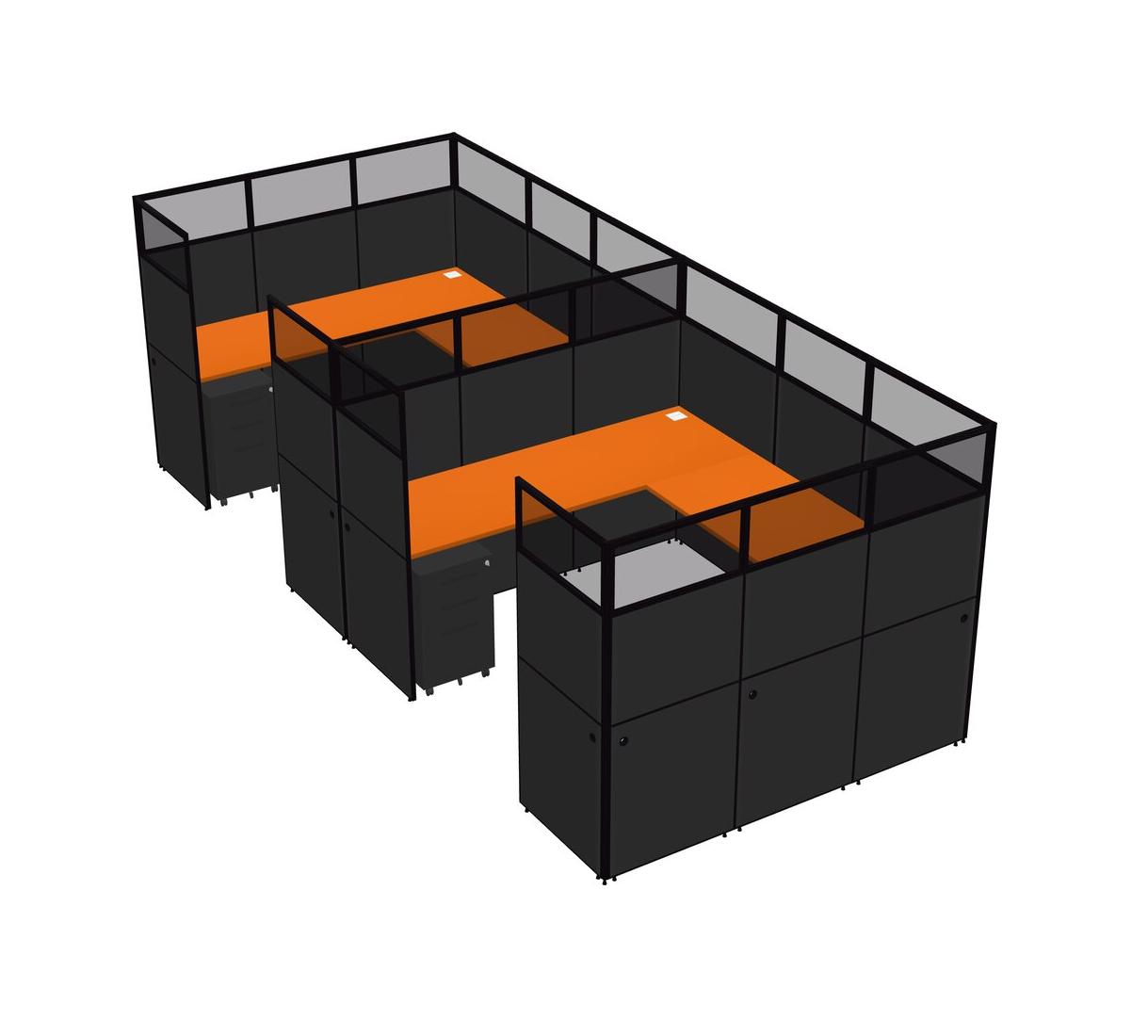 Système De Panneaux En U Orange Pour 2 Personnes + Tiroirs Mobiles En Métal Pour 2 Utilisateur(s)