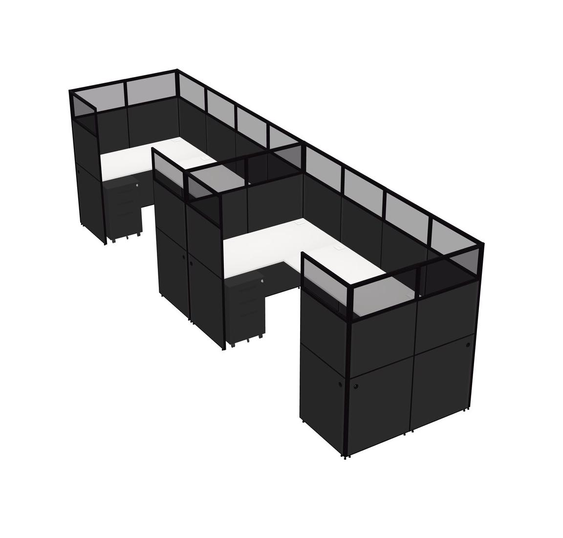 Système De Panneaux En U Blanc Pour 2 Personnes + Tiroirs Mobiles En Métal Pour 2 Utilisateur(s)