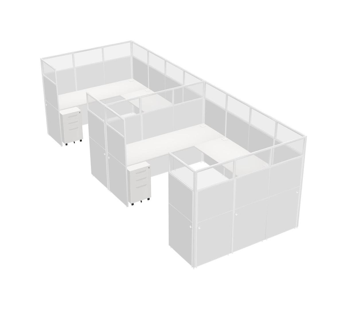 Système De Panneaux En U Blanc Pour 2 Personnes + Tiroirs Mobiles En Métal Pour 2 Utilisateur(s)