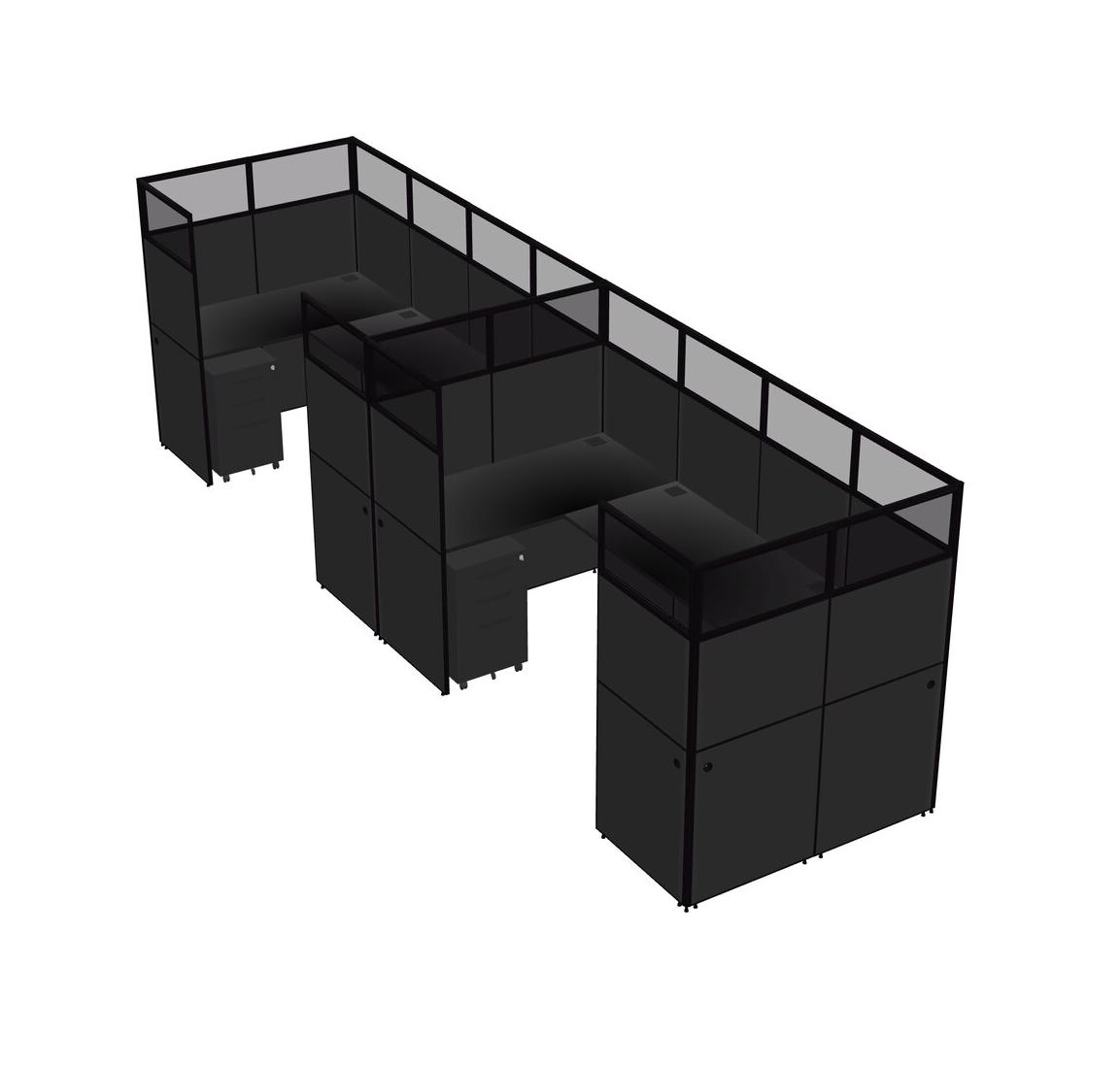 Système De Panneaux En U Noir Pour 2 Personnes + Tiroirs Mobiles En Métal Pour 2 Utilisateur(s)