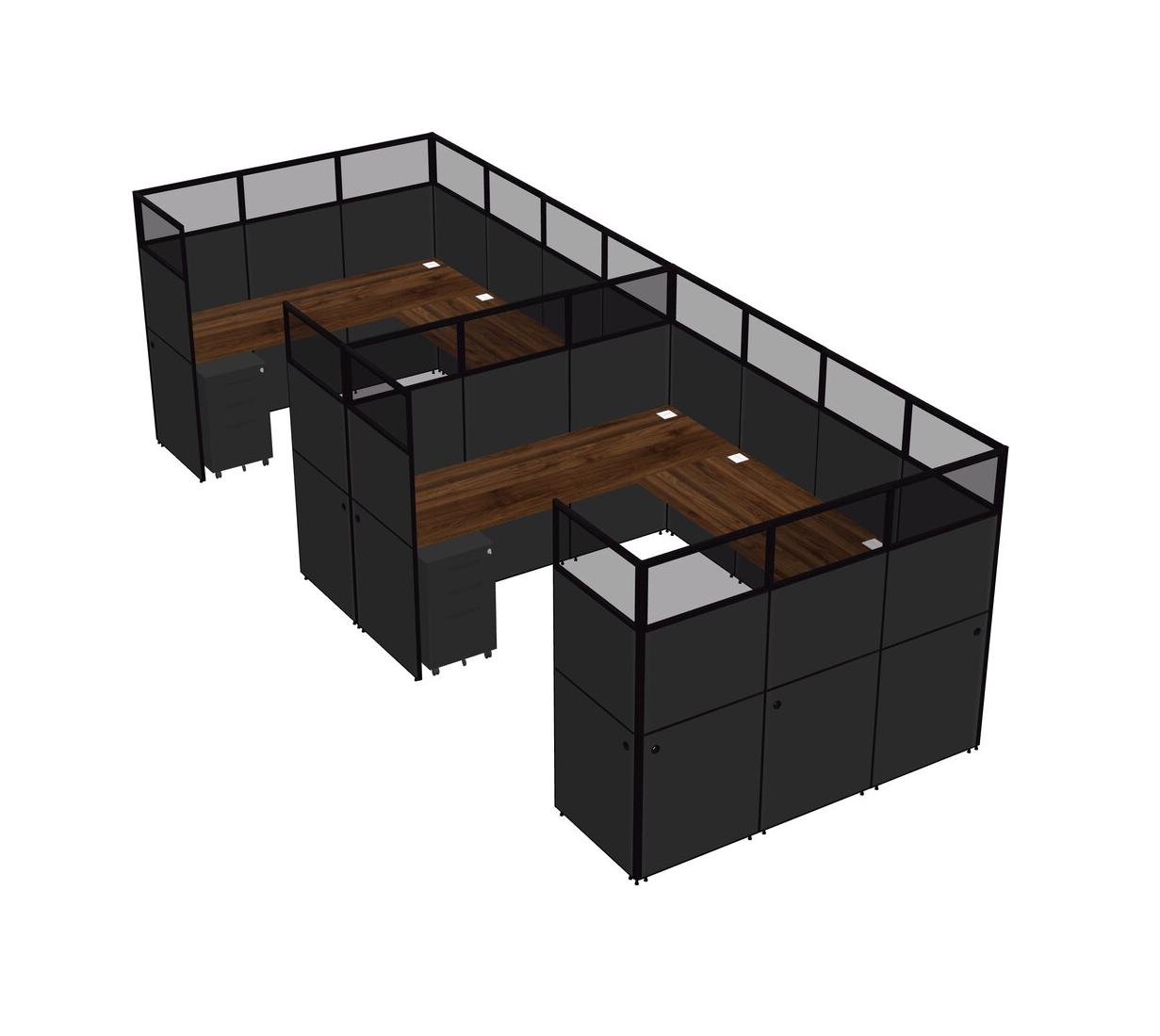 Système De Panneaux En U En Noyer Columbia Pour 2 Personnes + Tiroirs Mobiles En Métal Pour 2 Utilisateurs