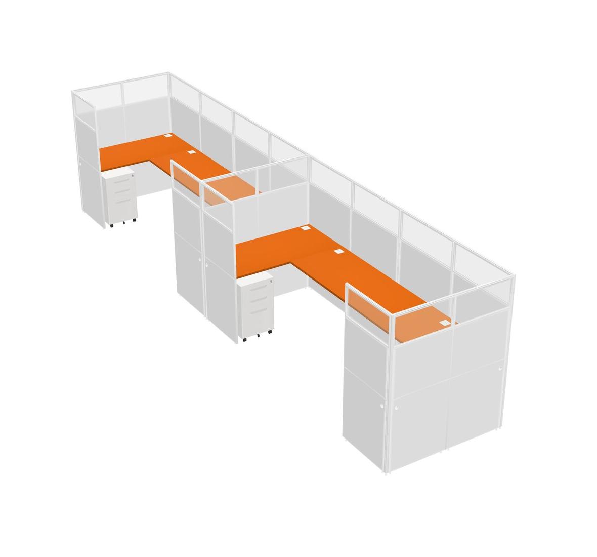 Système De Panneaux En U Orange Pour 2 Personnes + Tiroirs Mobiles En Métal Pour 2 Utilisateur(s)