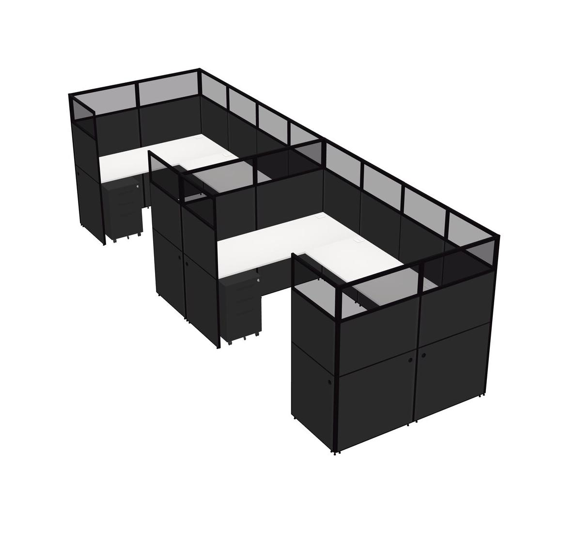 Système De Panneaux En U Blanc Pour 2 Personnes + Tiroirs Mobiles En Métal Pour 2 Utilisateur(s)