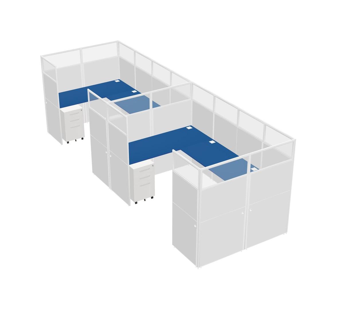 Système De Panneaux En U Prism Blue Pour 2 Personnes + Tiroirs Mobiles En Métal Pour 2 Utilisateurs