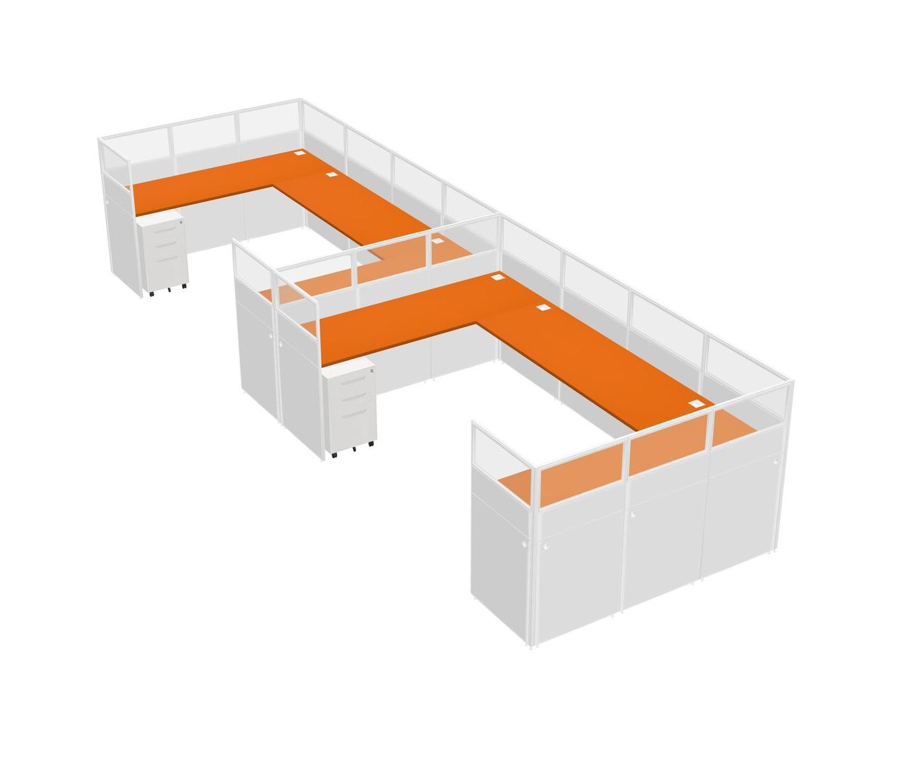 Système De Panneaux En U Orange Pour 2 Personnes + Tiroirs Mobiles En Métal Pour 2 Utilisateur(s)