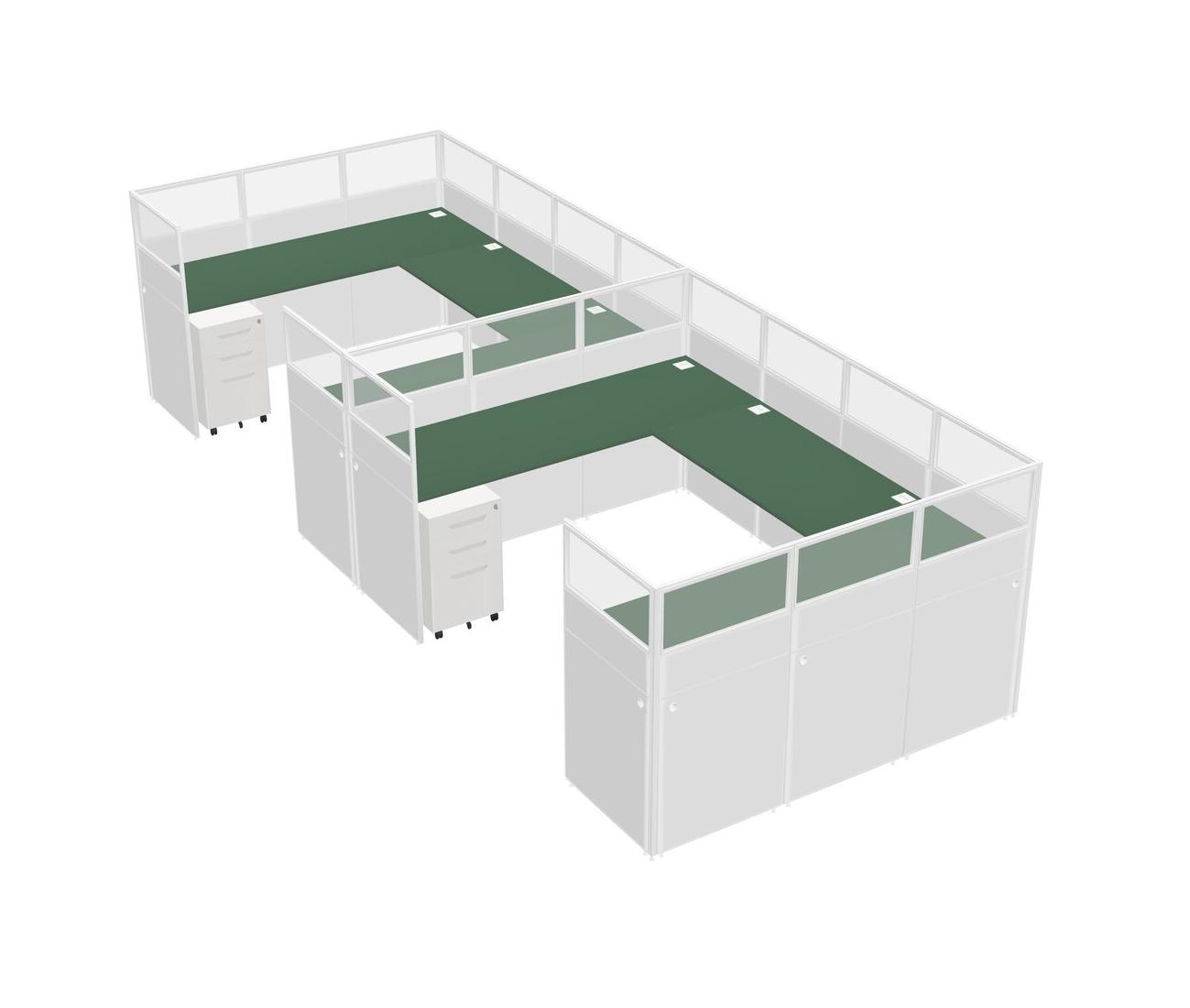 Système De Panneaux En U Vert Pour 2 Personnes + Tiroirs Mobiles En Métal Pour 2 Utilisateur(s)