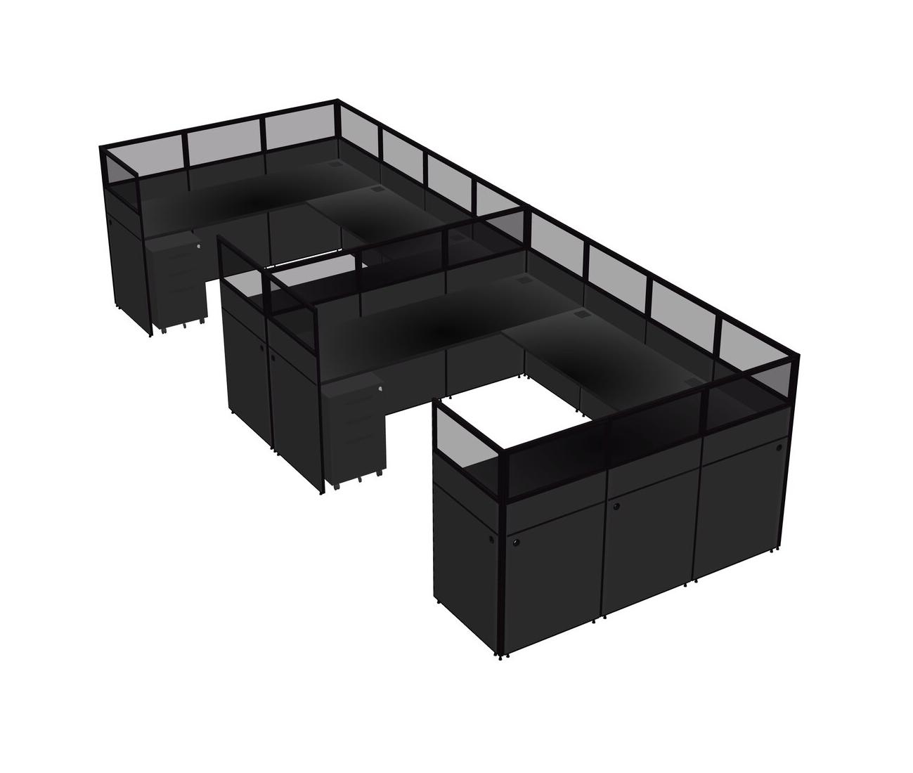 Système De Panneaux En U Noir Pour 2 Personnes + Tiroirs Mobiles En Métal Pour 2 Utilisateur(s)