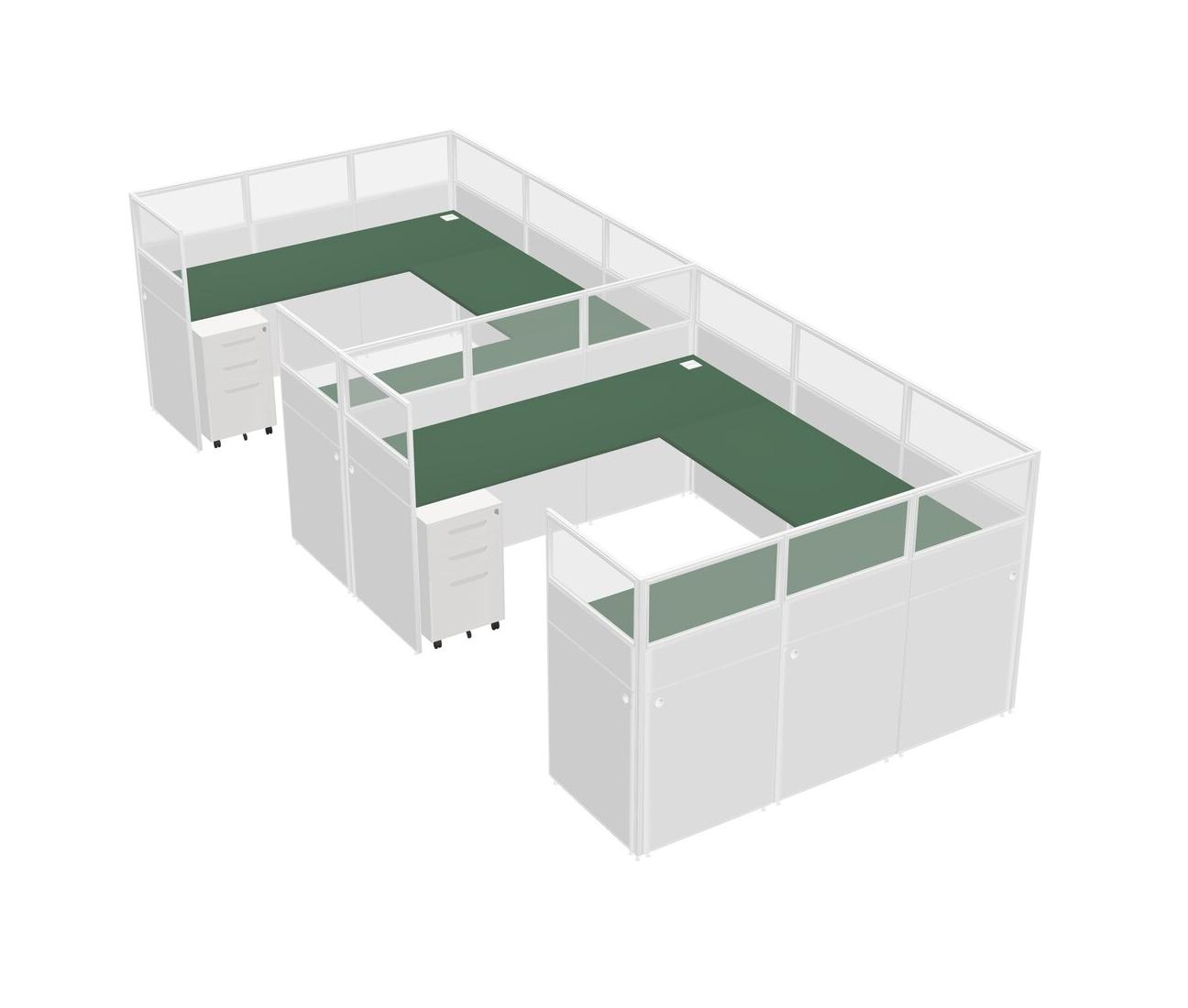 Système De Panneaux En U Vert Pour 2 Personnes + Tiroirs Mobiles En Métal Pour 2 Utilisateur(s)