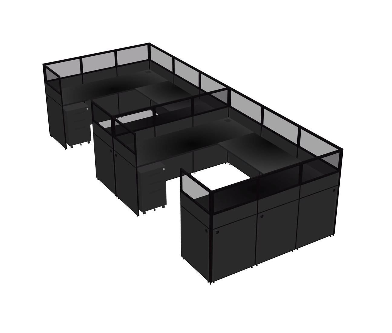 Système De Panneaux En U Noir Pour 2 Personnes + Tiroirs Mobiles En Métal Pour 2 Utilisateur(s)