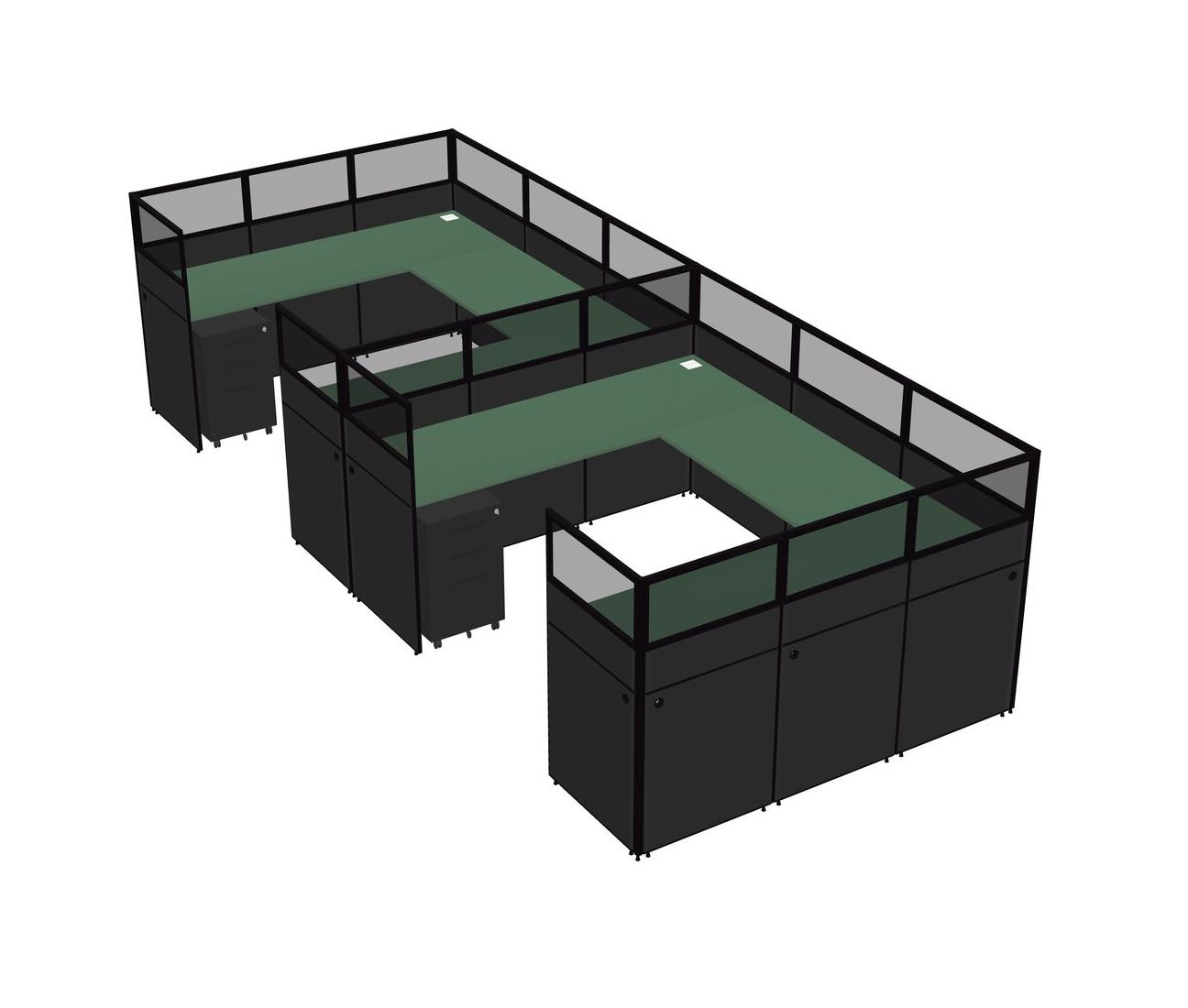 Système De Panneaux En U Vert Pour 2 Personnes + Tiroirs Mobiles En Métal Pour 2 Utilisateur(s)