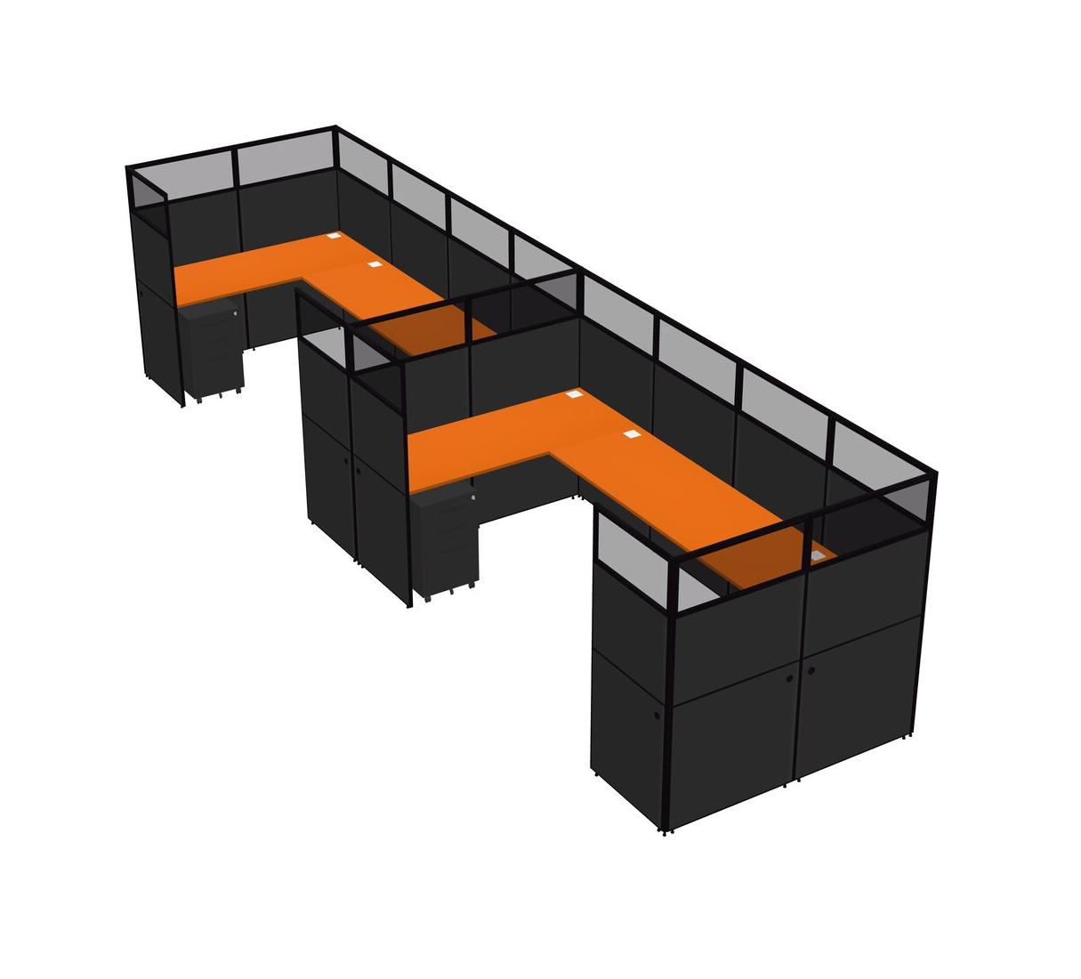 Système De Panneaux En U Orange Pour 2 Personnes + Tiroirs Mobiles En Métal Pour 2 Utilisateur(s)